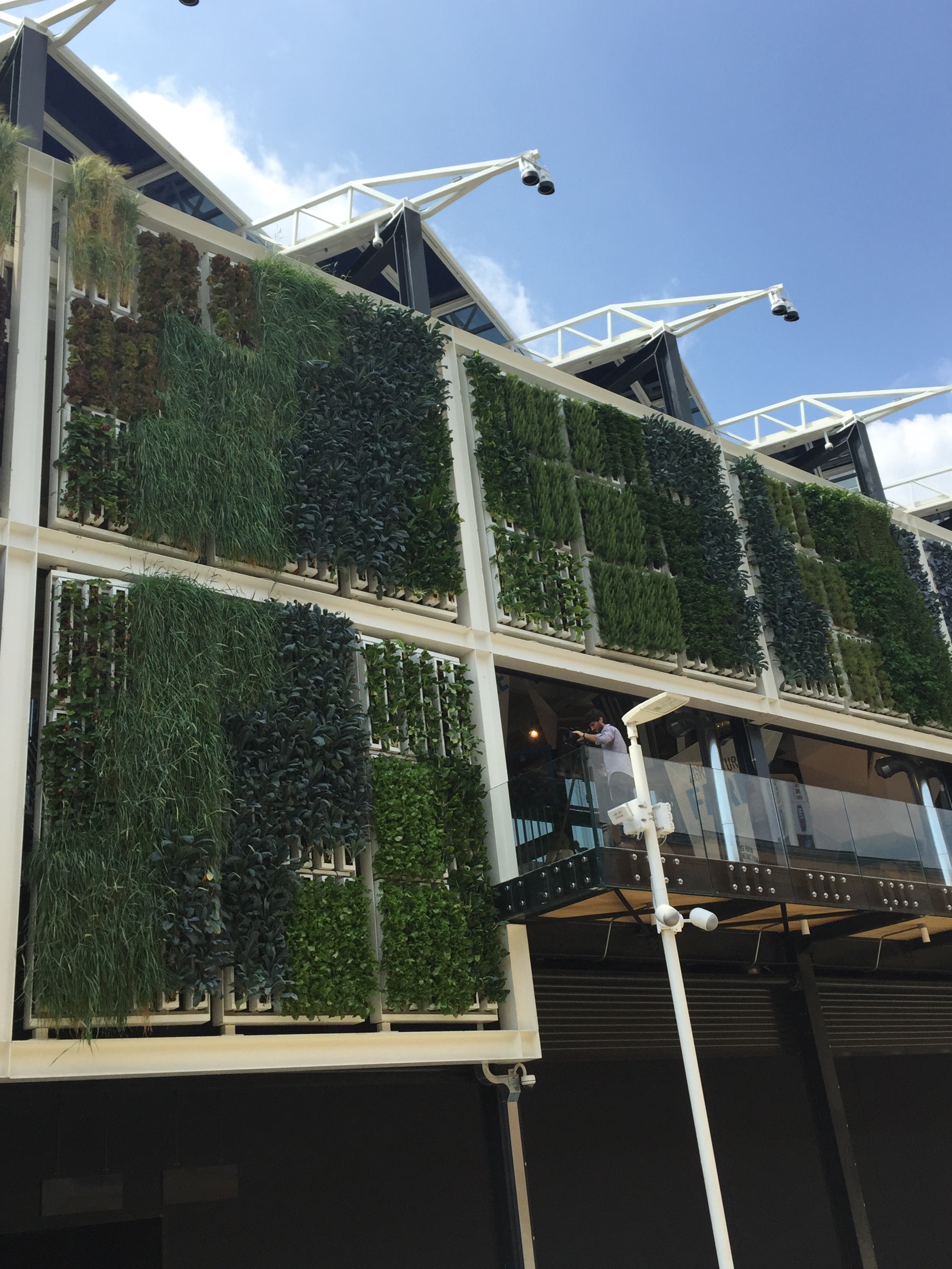 All’esterno un’innovativa parete di piante che si muove alla ricerca della giusta luce e aria.