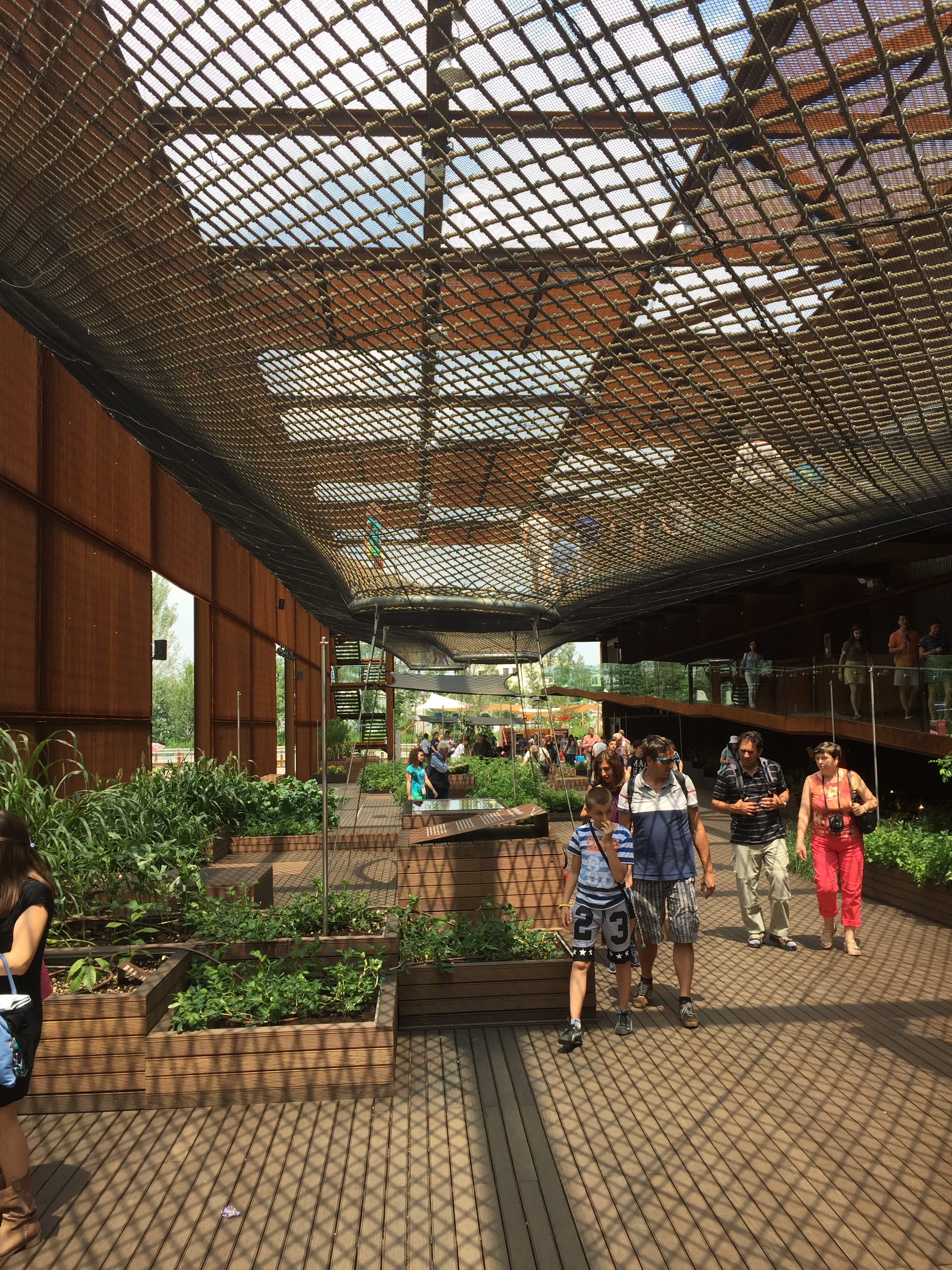 Avrete visto tutti il pavimento in rete del padiglione del Brasile su cui si può camminare su, ecco, c’era tantissima coda, allora ho rimandato ad una delle prossime volte ed ho fatto un giro nel giardino sottostante in cui sono state piantate piante tipiche del Brasile, come i fagioli (che stanno morendo, poretti), l’ananas e le patate.